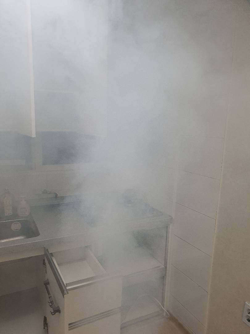 A. 네, 집에 계셔도 괜찮습니다. 저희는 정부 기관의 안전 승인을 받은 인체에 무해한 친환경 약품을 우선적으로 사용하며, 시공 시 분진이나 포자가 날리지 않도록 철저한 보양 작업을 진행합니다. 시공 후 환기를 통해 금방 사라지는 미미한 냄새 외에는 걱정하지 않으셔도 됩니다.